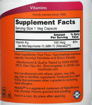 NOW Foods, Vitamin K-2, 100 mcg, 100 Veg Capsules