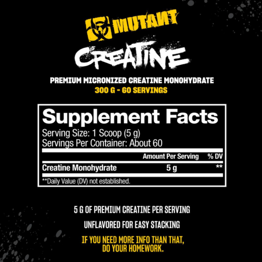 Mutant Creatine – Micronized Creatine Monohydrate – 300g (60 Servings)