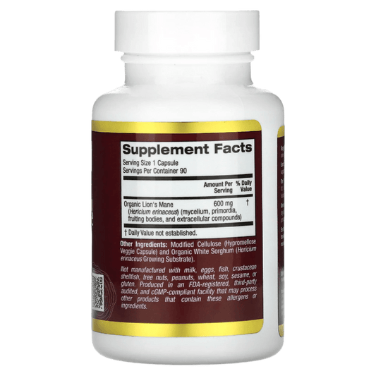 California Gold Nutrition, Lion's Mane, 600mg 90 Plant Capsules