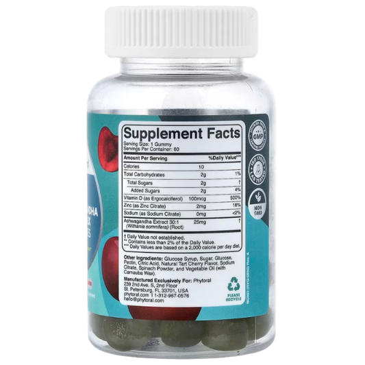 Phytoral Ashwagandha Complex Gummies – Tart Cherry Flavor, 60 Gummies | Stress Support, Mood Balance & Relaxation
