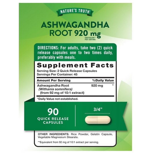 Nature's Truth Ashwagandha Supplement – 920 mg | 90 Capsules