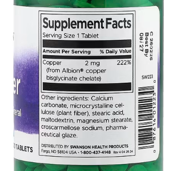Swanson Albion® Copper – 2 mg, 300 Tablets