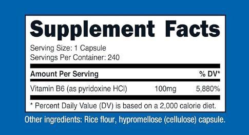 Nutricost Vitamin B6 (Pyridoxine HCl) 100mg, 240 Capsules