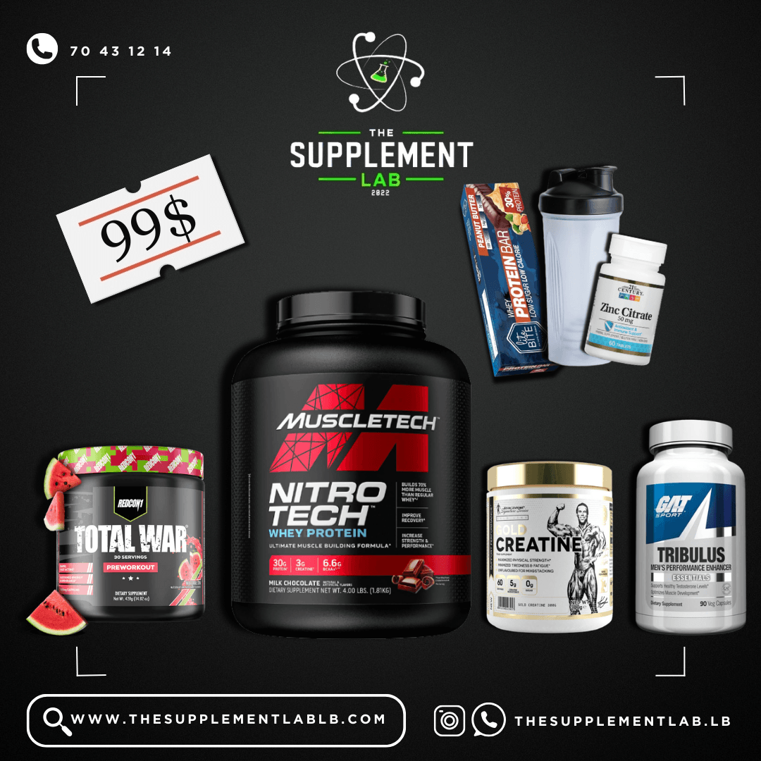 Nitrotech Whey + Total Wars + Creatine + Tibullus + Free Zinc, Shaker & Protein Bar