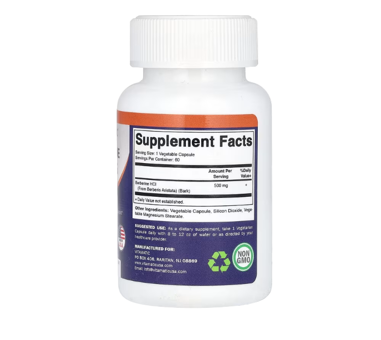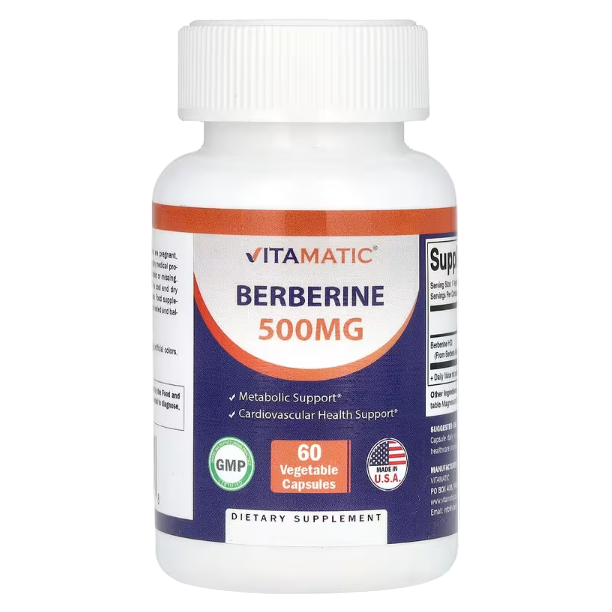Vitamatic Berberine provides a potent 500 mg dose per capsule to support healthy blood sugar metabolism, cardiovascular wellness, and weight management. Berberine is a plant-based compound traditionally used in herbal medicine for its powerful health-promoting properties, including aiding in healthy glucose balance and supporting metabolic health.